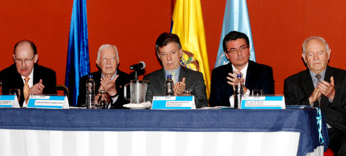 Caption: The President of the Republic, Juan Manuel Santos attended the delivery of certification for Colombia free from river blindness with former U.S. President Jimmy Carter, the Minister of Health and Social Protection, Alejandro Gaviria, in the Red room of the Hotel Tequendama.
