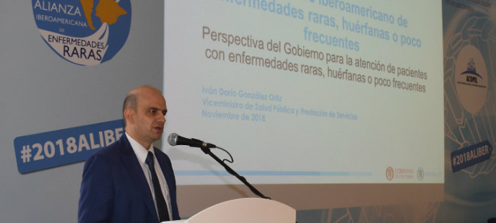 Bogotá (D.C.), 21 de noviembre de 2018.- El viceministro de Salud Pública y Prestación de Servicios, Iván Darío González Ortiz, presentó las perspectivas del Gobierno Nacional frente a la atención de las enfermedades huérfanas durante el VI Encuentro Iberoamericano de Enfermedades Raras, Huérfanas o Poco Frecuentes, como parte de la construcción de equidad en salud.
