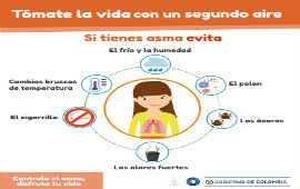 Lo anterior se enmarca en la estrategia "Tómate la vida con un segundo aire", impulsada desde 2017 y que promueve la prevención y control de las enfermedades respiratorias crónicas como el asma, y recalca que una persona con asma puede vivir sin limitaciones, pero para ello es crucial el control de la enfermedad.