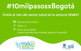 En el cierre del Walk21, el viernes 19 de octubre, las siete entidades del sector salud del Distrito se vincularán con el reto de movilizar el mayor número de funcionarios en una jornada de actividad física en la que caminen 10.000 pasos desde diferentes puntos de la ciudad hasta las sedes de trabajo.