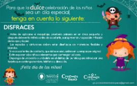 Añadió que ojalá el disfraz disponga de un bolsillo, para que en él se introduzca una tarjeta que contenga nombre, teléfono y dirección y de esta manera evitar la pérdida del menor.