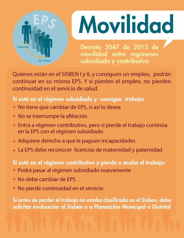 Cuando el usuario no registre la solicitud de movilidad del Régimen Contributivo al Régimen Subsidiado, la EPS deberá reportar la novedad ante la BDUA e informar al afiliado y a la respectiva entidad territorial.pacidad de pago y se encuentra en los niveles I o II del SISBEN, puede permanecer en la misma EPS con su núcleo familiar, para lo cual, deberá reportar a la EPS la novedad de movilidad.