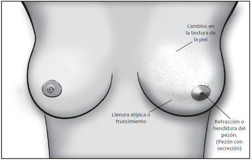 Los signos y síntomas del cáncer de mama incluyen: